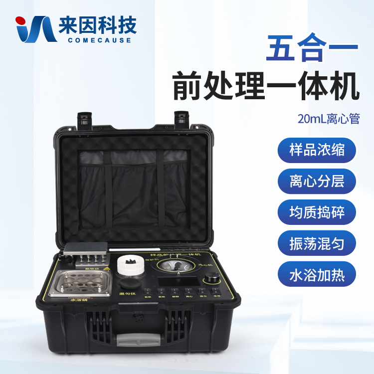 应国内用户的实际需求,自行研制开发的新型仪器——QC05B型样品前处理一体机。样品前处理集成箱将样本前处理过程中样品浓缩、水浴恒温、离心分层、均质、振荡混匀等步骤所需设备进行集成,仅需一台样品前处理集成箱设备即可完成所有样本前处理过程,并且方便携带,不仅适用于现场检测使用,还可用于色谱、质谱等分析样品的纯化和制备。