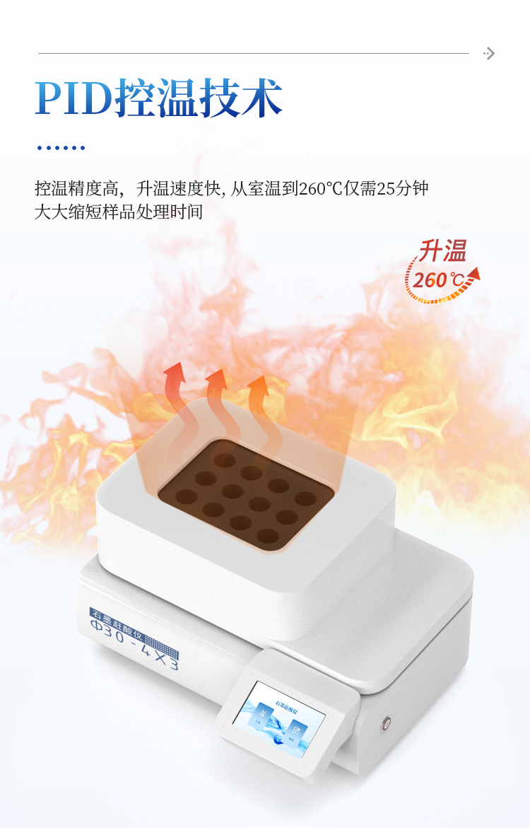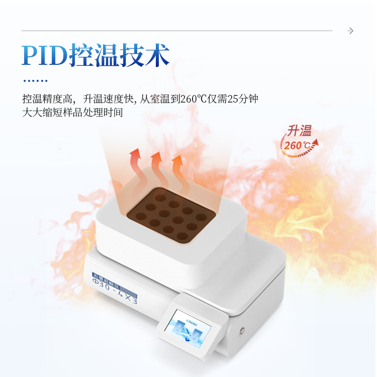 2. 采用PID控温技术,控温精度高,升温速度快。