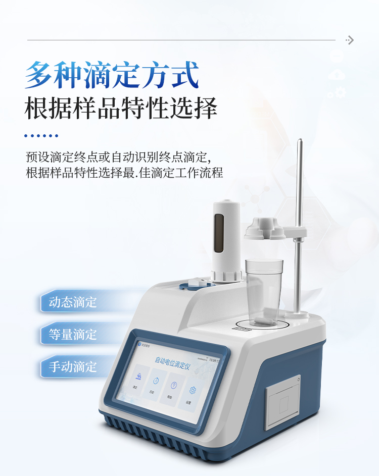 自动电位滴定仪是一种用于化学分析的精密仪器,他通过自动添加滴定剂来确定样品中特定成分的浓度。该仪器基于电位滴定原理工作,即根据在滴定过程中电池电动势的变化来确定滴定终点的一款滴定设备。