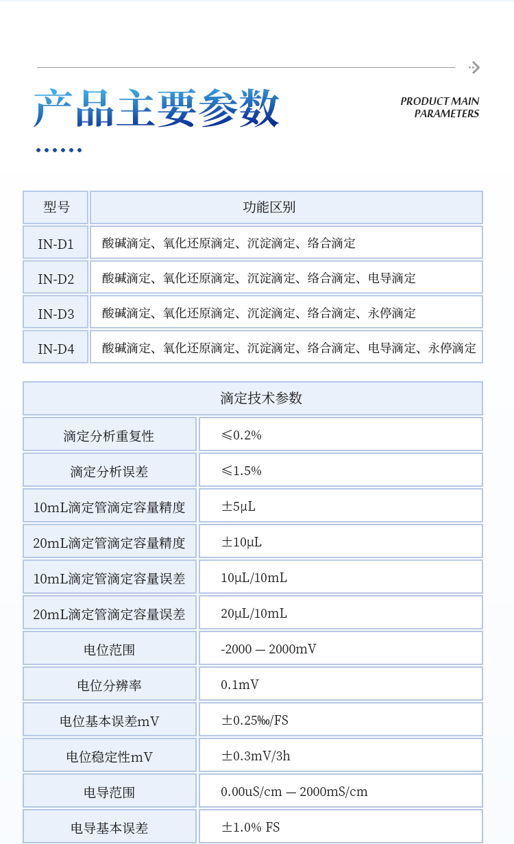自动电位滴定仪是一种用于化学分析的精密仪器,他通过自动添加滴定剂来确定样品中特定成分的浓度。该仪器基于电位滴定原理工作,即根据在滴定过程中电池电动势的变化来确定滴定终点的一款滴定设备。设备满足国家检定规程JJG 814-2015《自动电位滴定仪》仪器级别中的0.05级别,即仪器最大示值误差为±1.5%,仪器示值重复性≤0.2%
