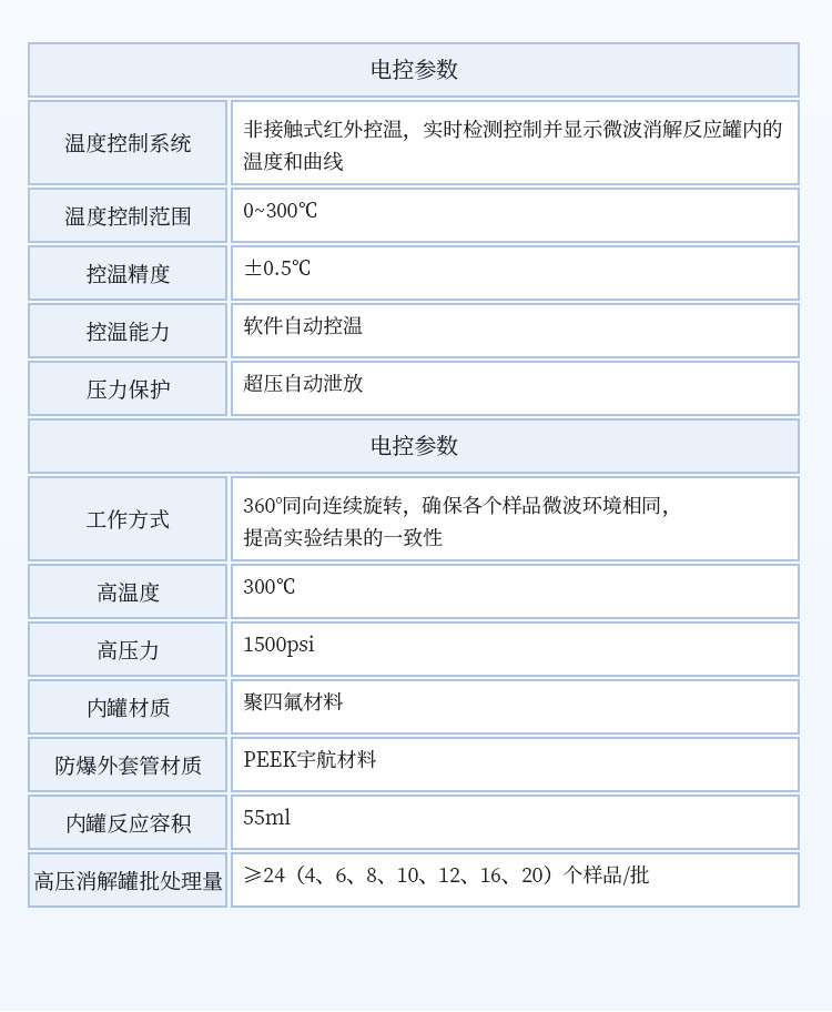 温度控制系统:非接触式红外控温,实时检测控制并显示微波消解反应罐内的温度和曲线。