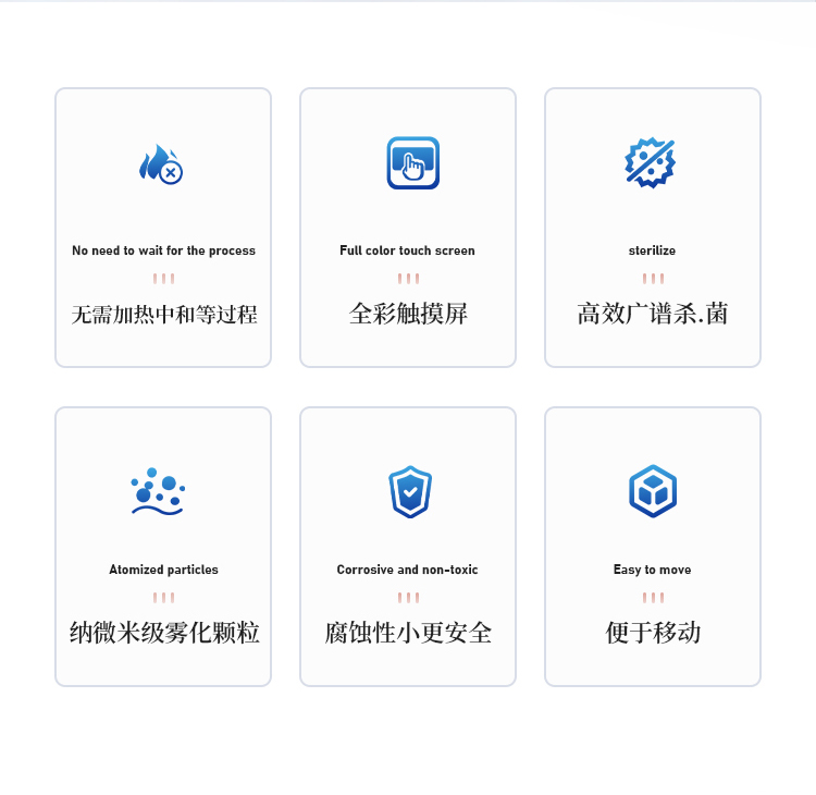 3、微米级雾化颗粒,消毒因子形成布朗运动,均匀扩散。
