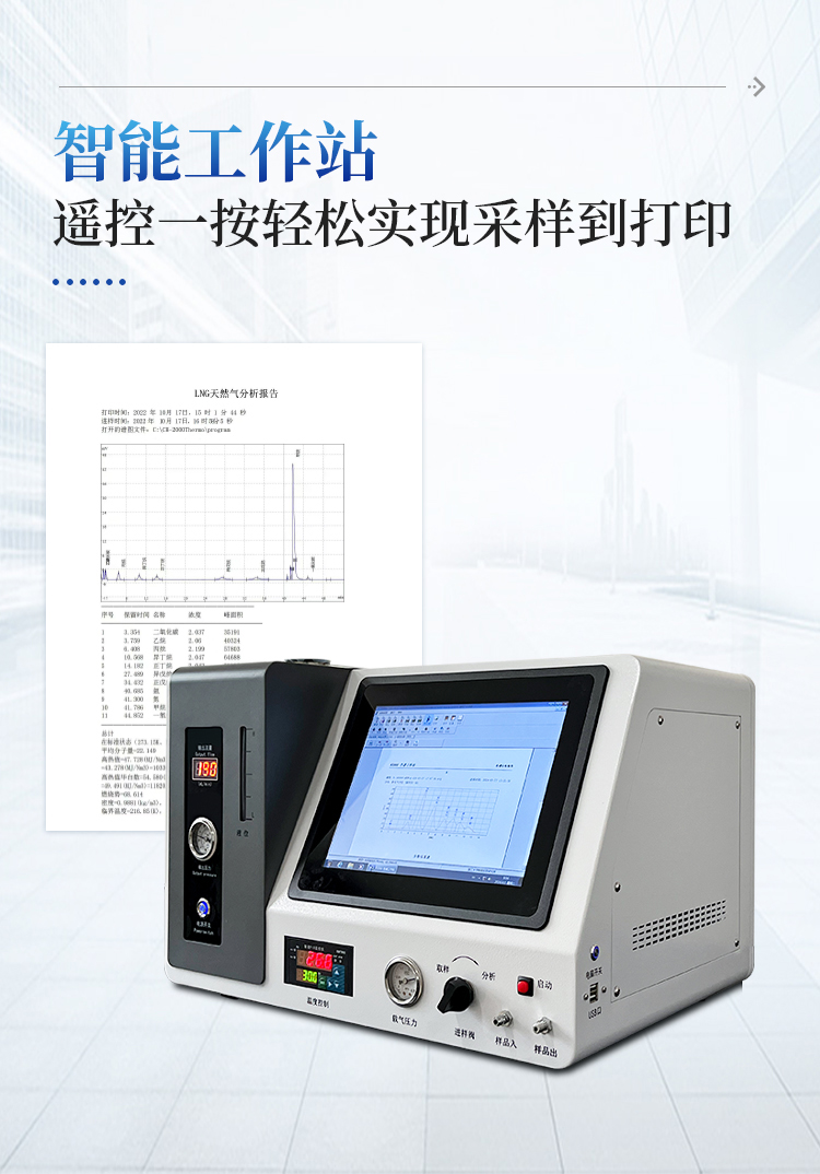 工作站完美结合 ,检测和显示于一体 ,通过一次进样可以完成 气体中含量的精确分析 ,可直接打印分析报告