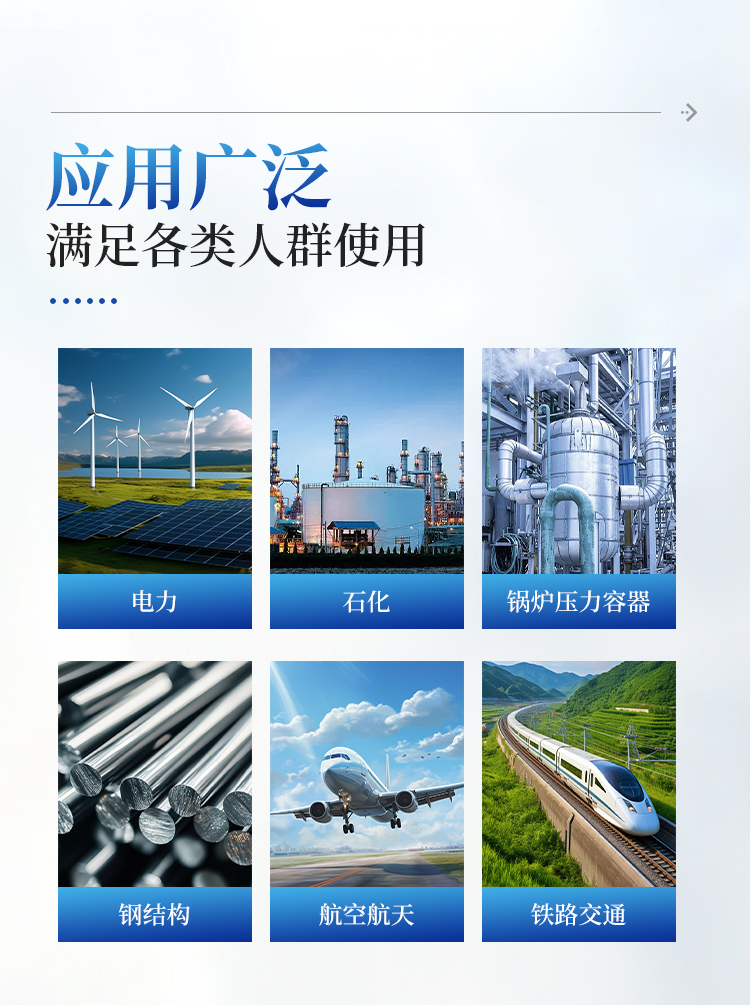 数字超声波探伤仪能够便捷、准确地进行工件内部多种缺陷如裂纹、焊缝、气孔、砂眼、夹杂、折叠等的检测、定位、评估及诊断,广泛应用于电力、石化、锅炉压力容器、钢结构、航空航天、铁路交通、汽车、机械等领域。它是无损检测行业的仪器。