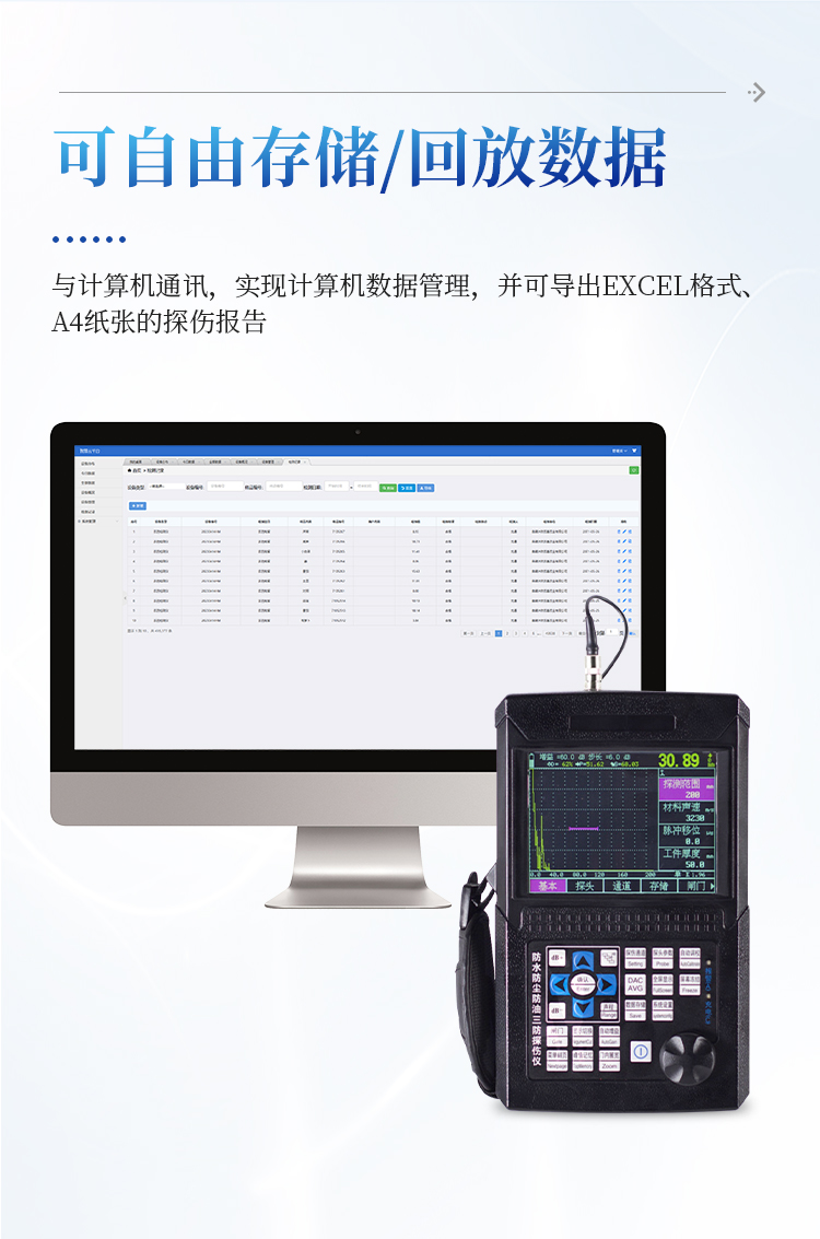 5、USB接口连接PC端进行数据传输,自动生成探伤报告;