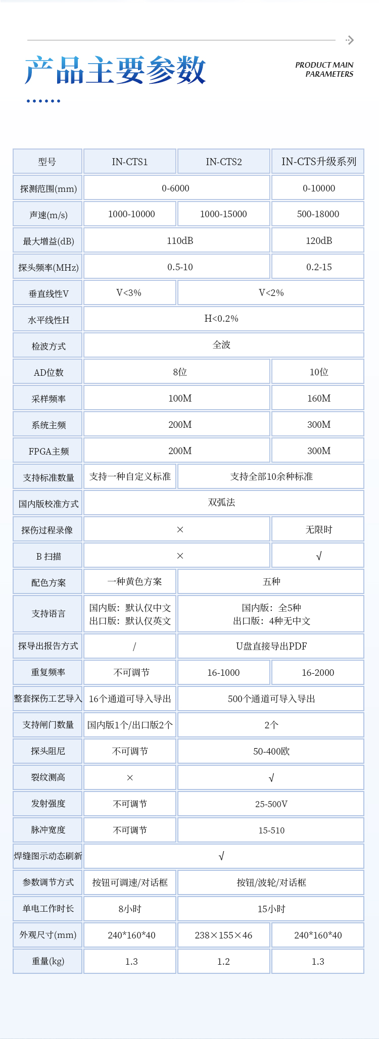 | 探头频率(MHz) | 0.5-10 | 0.5-10 | 0.2-15 |