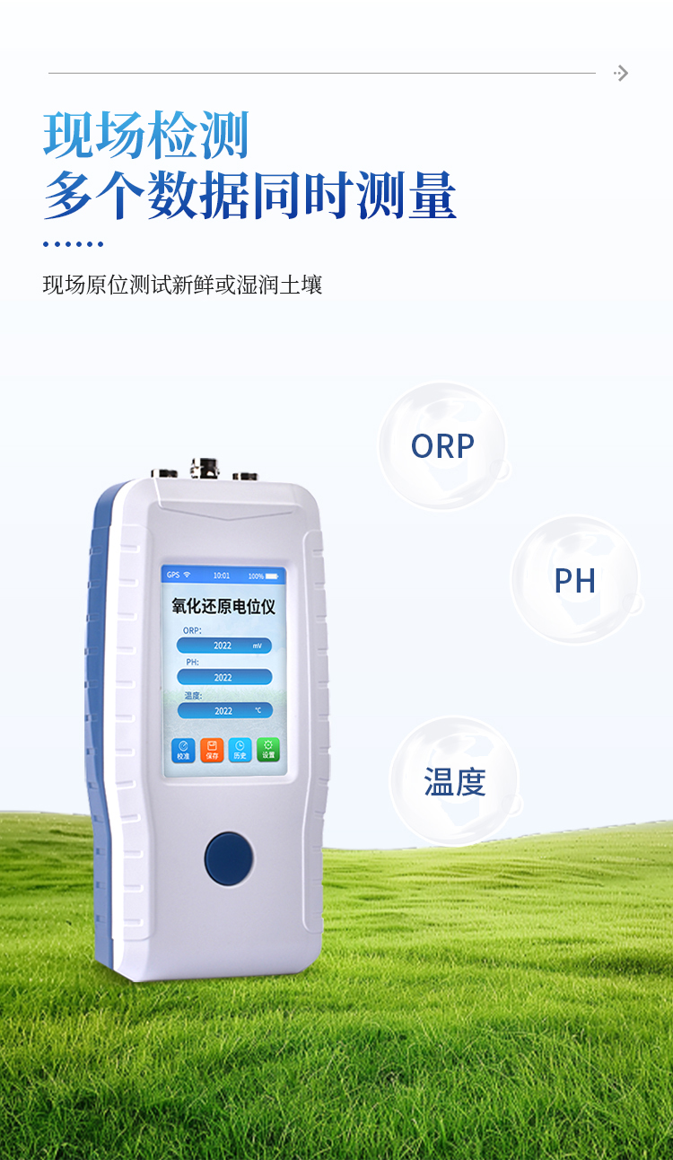土壤氧化还原电位(ORP/Eh)作为土壤环境条件的一个综合性指标,已沿用很久,它表征介质氧化性或还原性的相对程度,对土壤的化学和生物学过程有重要的影响,是理解土壤的性质和过程的重要参数。氧化还原电位越高,氧化性越强,氧化还原电位越低,还原性越强。电位为正表示溶液显示出一定的氧化性,为负则表示溶液显示出一定的还原性。
