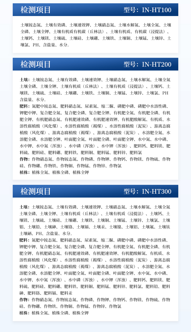 一、高精度土壤肥料养分检测仪IN-HT200检测项目