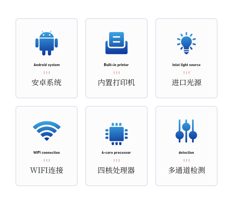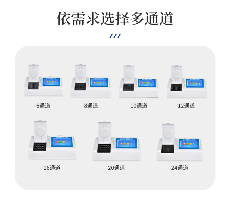4、检测通道:20个检测通道,可以同时测试多个样品,循环检测,即放即检,每个样品由程序控制分别独立工作,不会互相干扰。