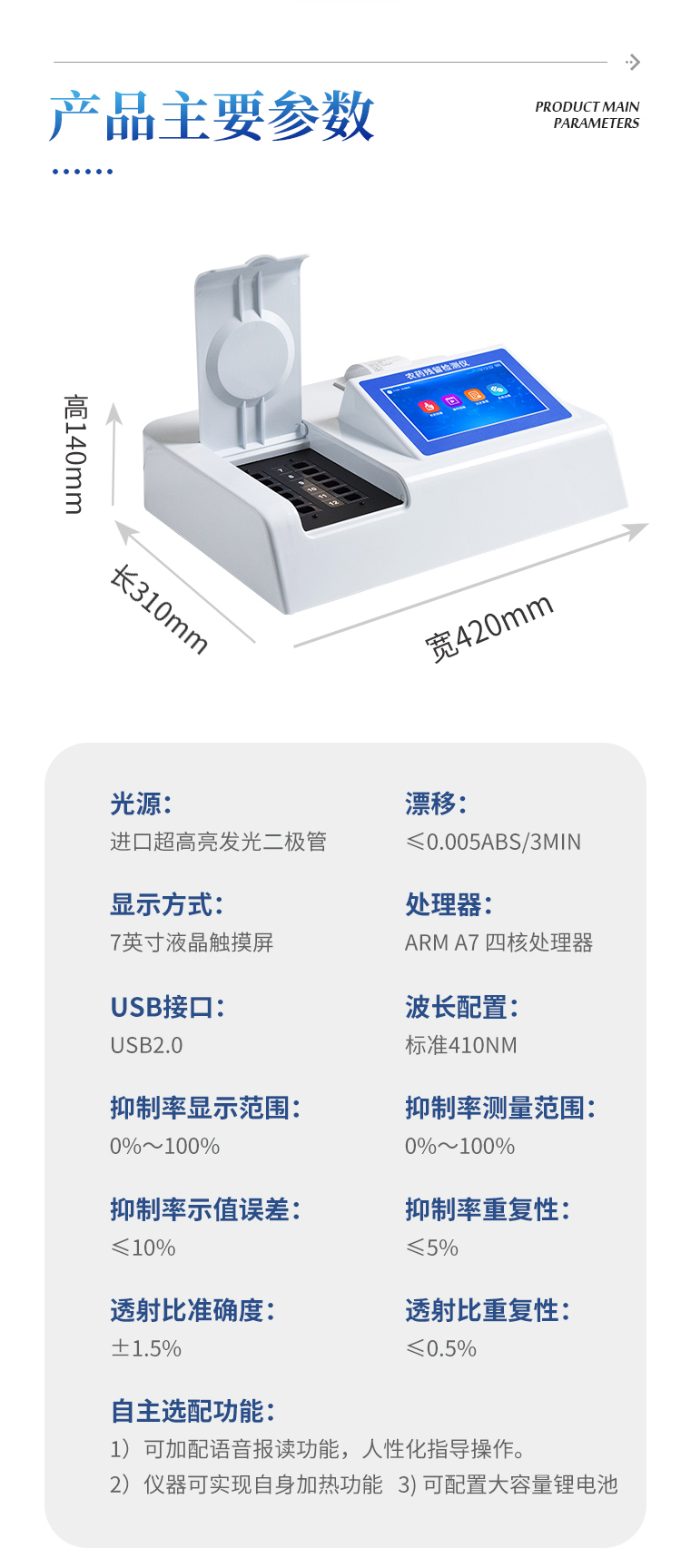 *抑制率测量范围:0%~100%;