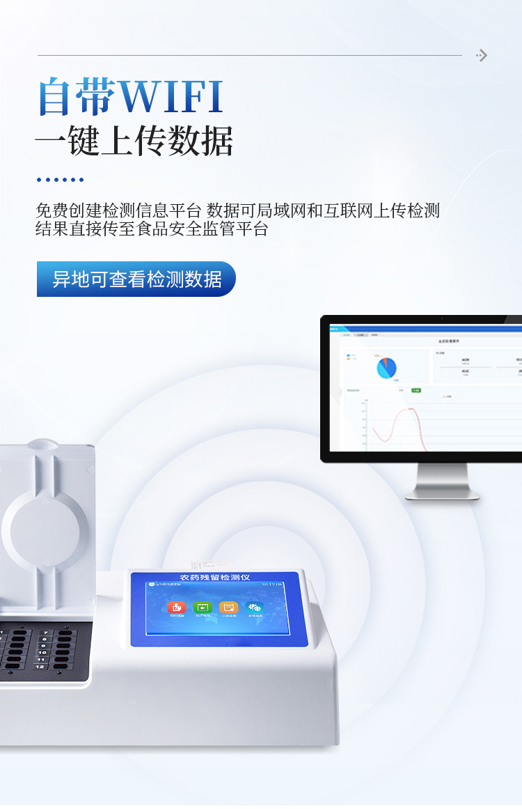 10、仪器具有GPRS远传功能,可插手机卡实现数据远传平台,wifi联网功能,可将数据快速上传电脑,进行数据管理与统计。