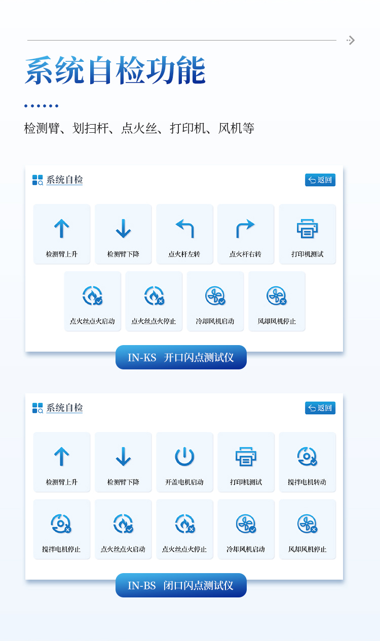 自检功能 检测臂、划扫杆、点火丝、打印机、风机等