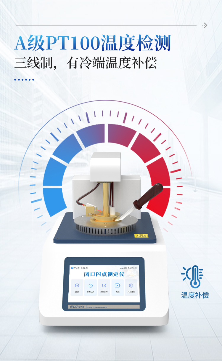 全自动闭口闪点仪是一种专门用于测量石油产品、化学溶剂等易燃液体在密闭容器中,与空气形成可燃气体混合物后遇到火源时产生瞬间闪火的最低温度的仪器。