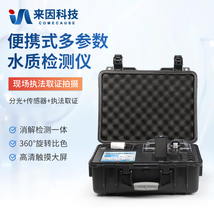 便携多参数水质检测仪采用高强度PVC工程塑料手提箱设计,消解检测一体式设计,其中消解模块具备双温区功能,检测部分同时具备360°旋转比色管检测和比色皿检测,安卓智能操作系统,8英寸高清液晶触摸屏,光纤检测技术,进口光源,内置大容量锂电池,现场执法取证模块,便携多参数水质检测仪具有性能稳定、测量准确、测定范围广、功能强大、操作简单等特点。