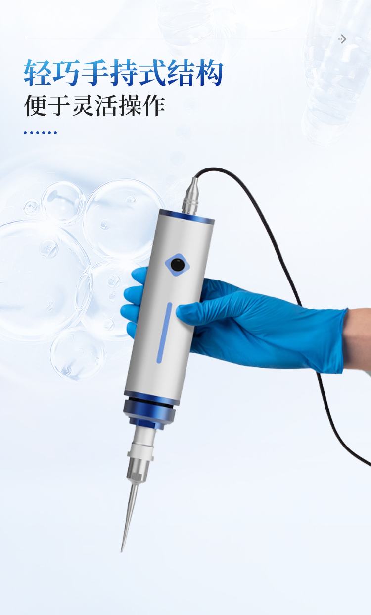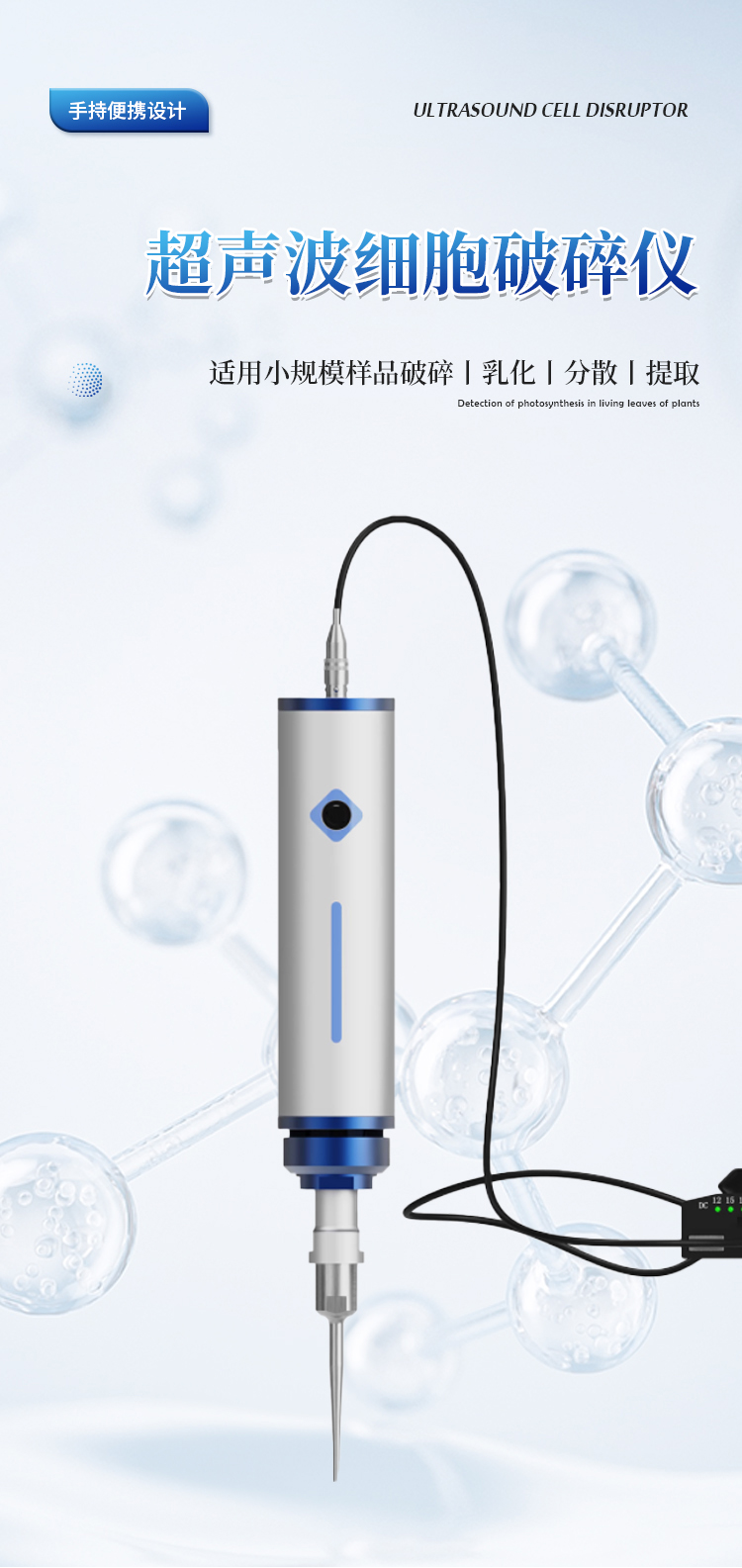 手持超声波细胞破碎仪是一种便携式、高精度的超声波处理设备,适用于实验室小规模样品破碎、乳化、分散和提取等操作。其一体化设计集成了超声波发生器和换能器,操作灵活,可手持使用或搭配支架固定,适用于生物、化学、材料等领域的高效样品处理。