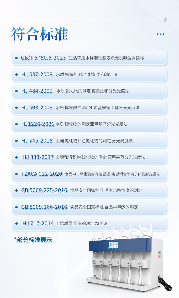 | 方法保存/读取 | 历史应用方法自动保存,自动加载 | 可保存≤1000种蒸馏方法,内置18种常用国标方法 | |