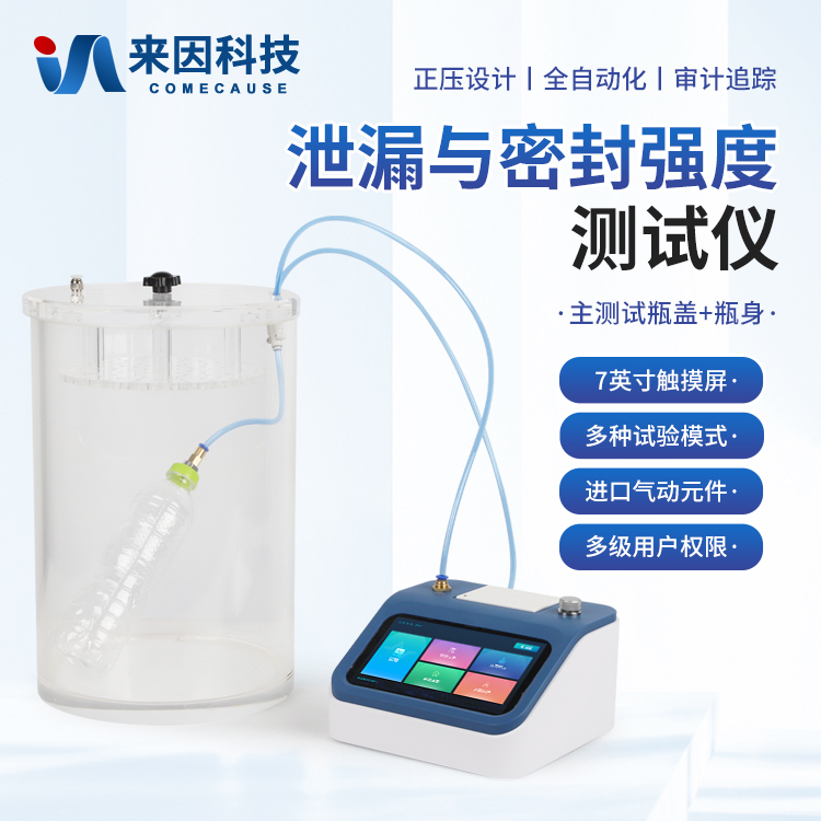 泄漏与密封强度测试仪,专业适用于各种热封、粘接工艺形成的软包装件、无菌包装件等各封边的封口强度、热封质量、以及整袋胀破压力、密封泄漏性能的量化测定;对软包装袋所使用材料的抗压强度、耐破强度等指标分析;各种塑料防盗瓶盖密封性能、瓶盖连接脱扣强度、材料的应力强度的量化测定;瓶体密封性、抗压性、耐破性等评估分析。通过正压法来进行测试,模拟实际使用环境下的密封强度、泄漏性能和耐压极限,为各行业的包装质量管控提供可靠的依据。