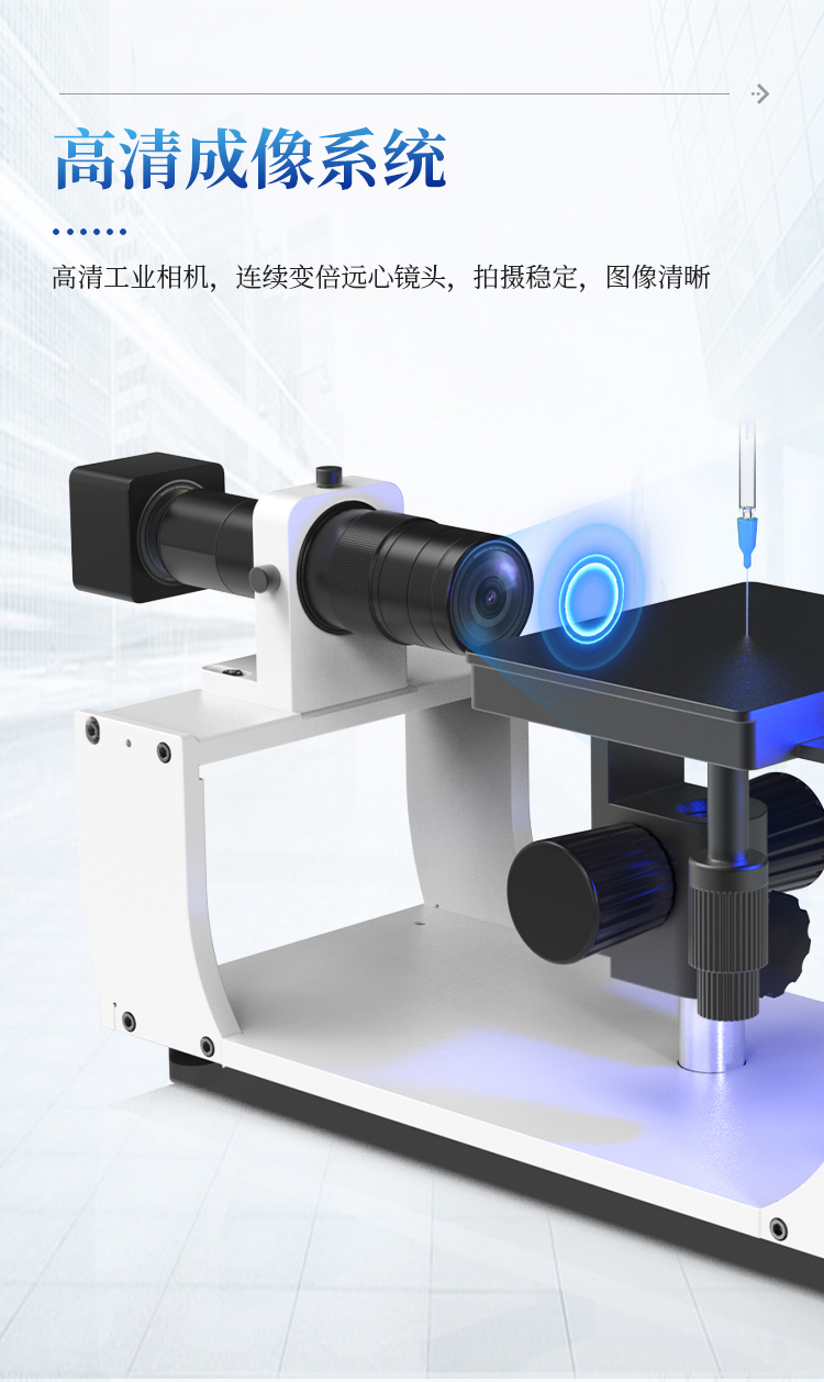 采集系统采用黑白进口CCD相机,拍摄稳定,图像清晰,真实可靠,镜头采用德国工业级进口配置,0.5-5倍放大可调,成像无畸形失真;