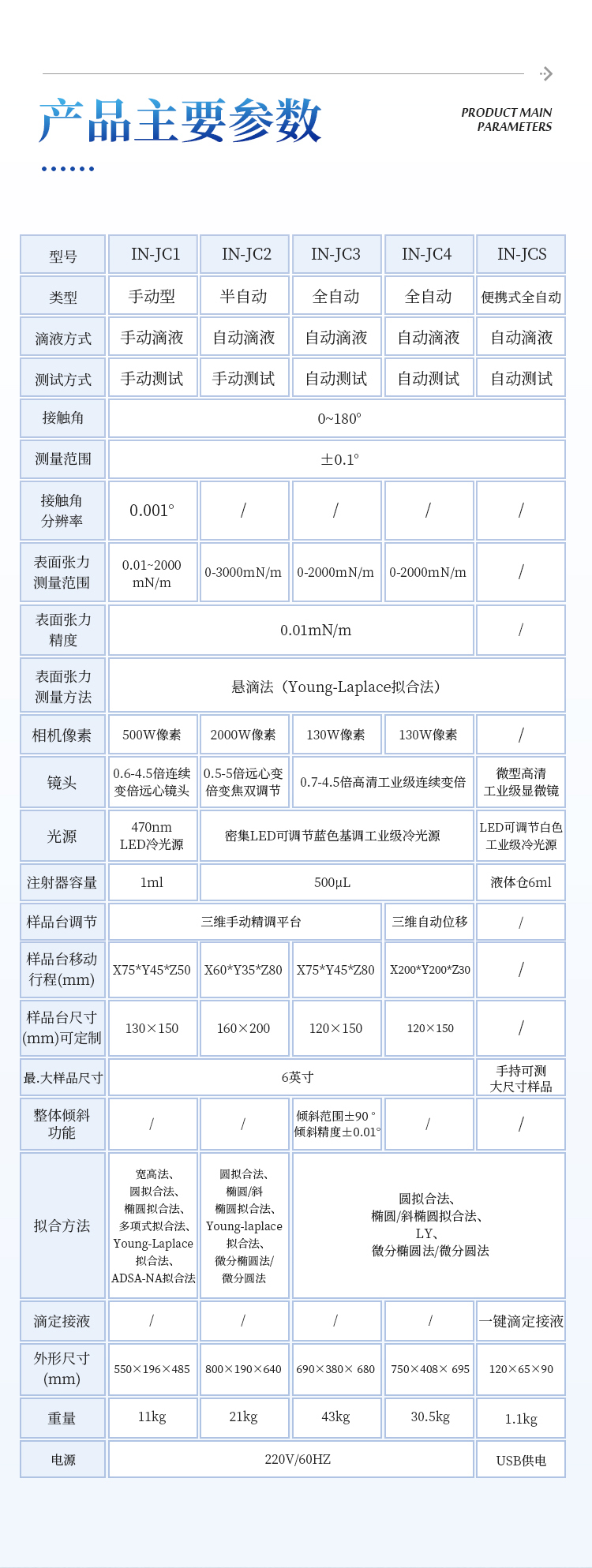 | 接触角测量范围 | 0-180° |