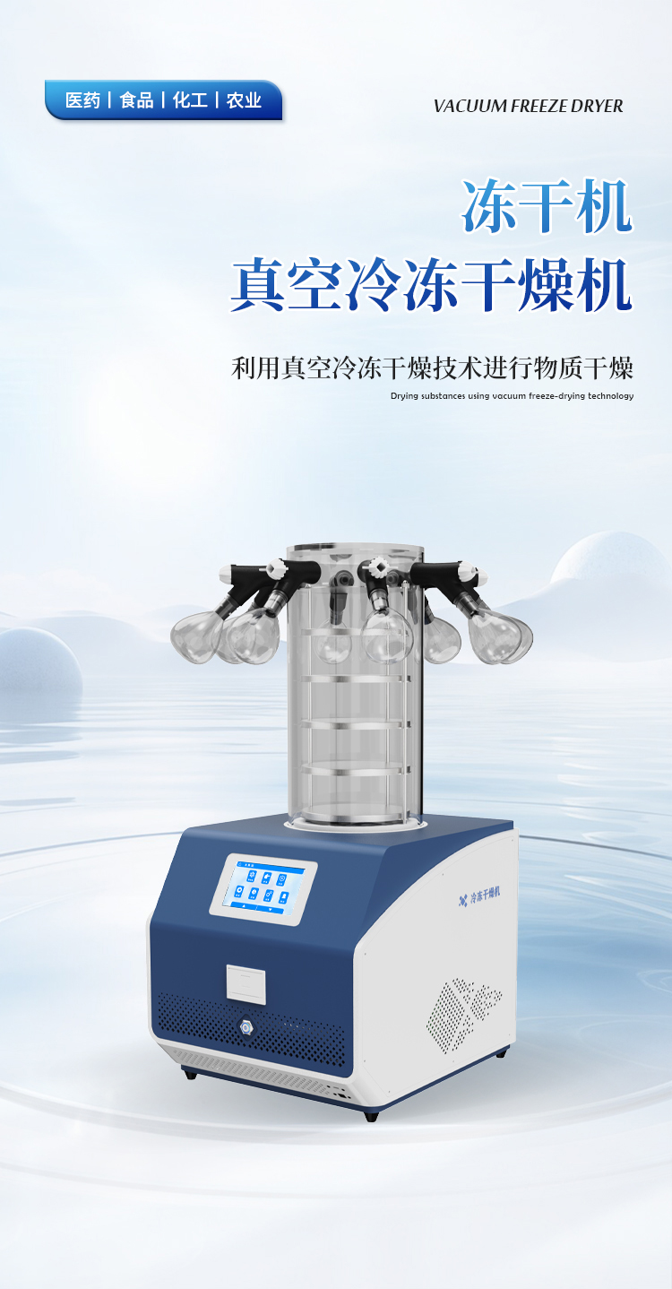 冷冻干燥机是一种利用真空冷冻干燥技术进行物质干燥的设备。其基本原理是将含水物质先冻结成固态,然后通过升华原理使水分从固态直接升华为气态,从而去除水分,保存物质。冻干机广泛应用于医药、生物制品、食品等领域,具有干燥效果好、保存时间长、复水性好等优点。