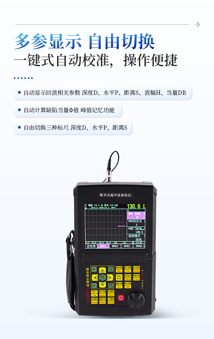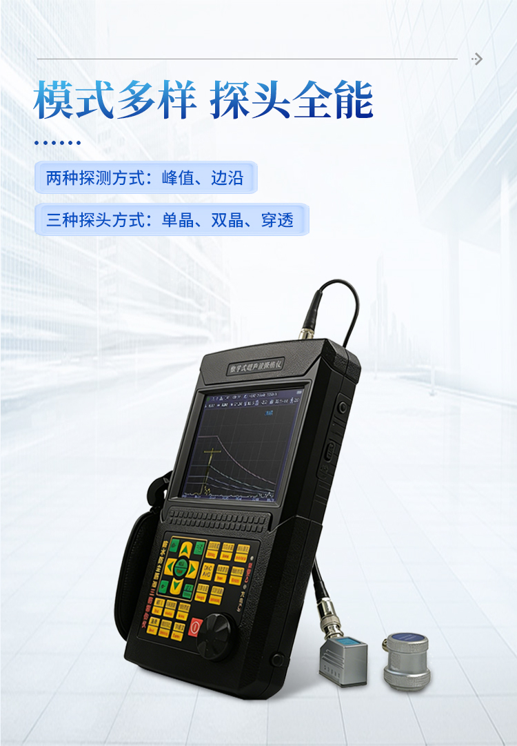 数字超声波探伤仪能够便捷、准确地进行工件内部多种缺陷如裂纹、焊缝、气孔、砂眼、夹杂、折叠等的检测、定位、评估及诊断,广泛应用于电力、石化、锅炉压力容器、钢结构、航空航天、铁路交通、汽车、机械等领域。它是无损检测行业的仪器。