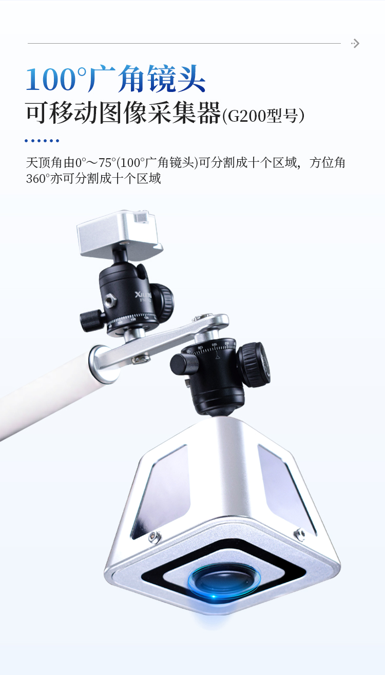 视角细分: 天顶角由0°~75°(100°广角镜头)可分割成十个区域,方位角360°亦可分割成十个区域